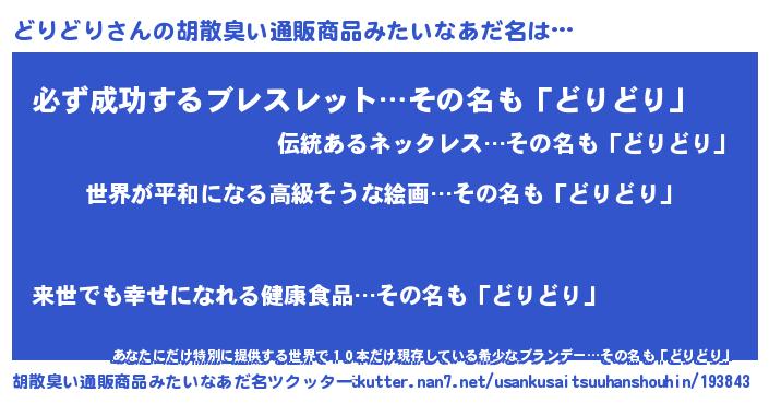 | ヘコむあだ名 | 『豆乳』『どりもー』『どりっ子』 |