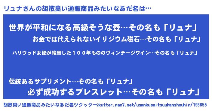 | 恥ずかしいあだ名 | 『リュっちょ』『プリティーリュナ』 |