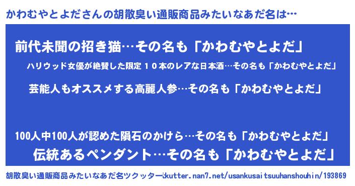 | 意味不明あだ名 | 『自称かわむやとよだ』 |