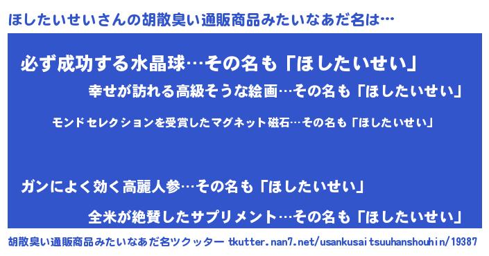 | ヘコむあだ名 | 『ほしふぇ~』『ほしっぺ』 |