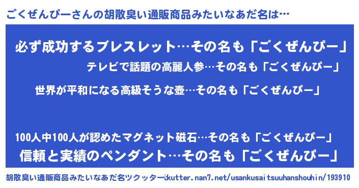 | 意味不明あだ名 | 『ごくぜんぴーフォーエバー』 |