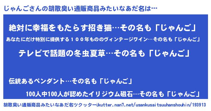 | ヘコむあだ名 | 『じゃんご(苦笑)』『じゃを』 |