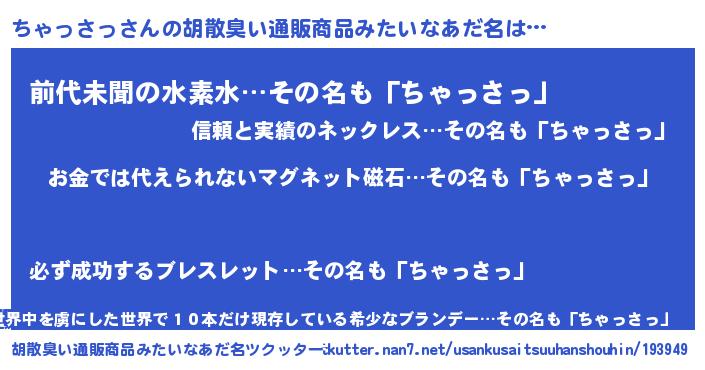 | 料理風あだ名 | 『ちゃっさっごはん』 |
