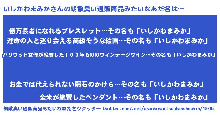 | 欧米人風あだ名 | 『アンジェラ・いしかわまみか』 |