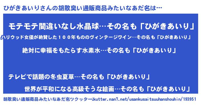 | 意味不明あだ名 | 『永久保存ひがきあいり』 |