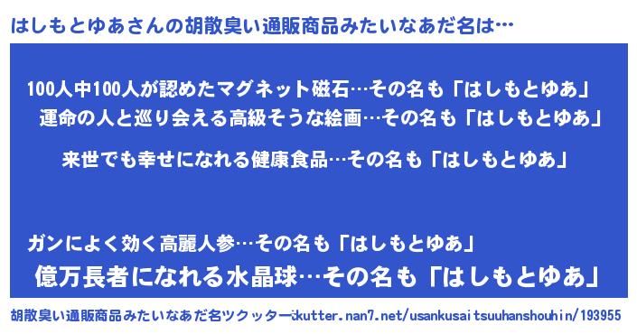 | 意味不明あだ名 | 『永久保存はしもとゆあ』 |