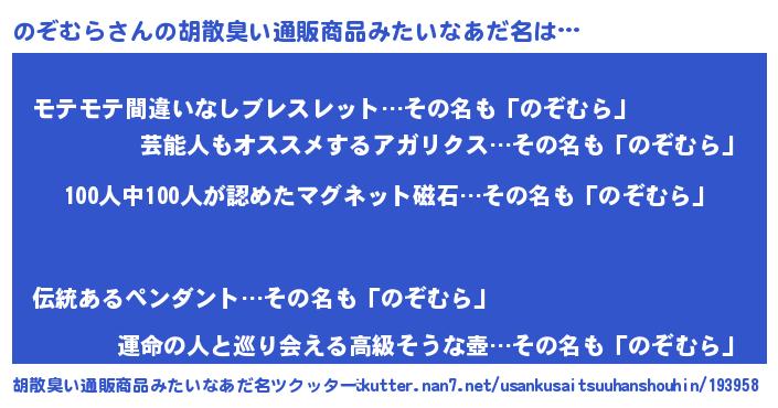| 意味不明あだ名 | 『眠気覚ましガムのぞむら味』 |