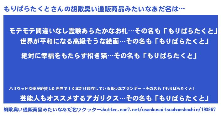 もりばらたくとさんの胡散臭い通販商品みたいなあだ名をツクッター!