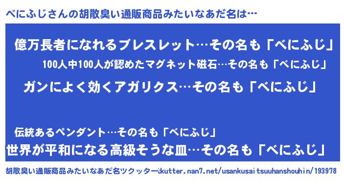 | ヒーロー風カッコイイあだ名 | 『ウルトラ戦士ベニフジ』『暗黒騎士ベニ』 |