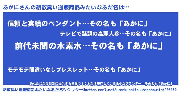 | 欧米人風あだ名 | 『トリンドルあかに』『ウサインあかに』 |