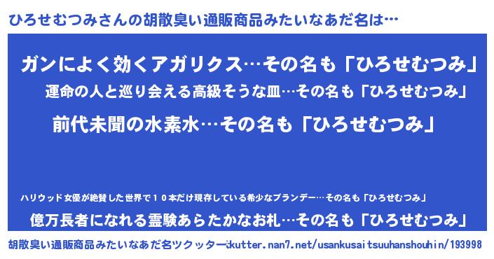 | 意味不明あだ名 | 『永久保存ひろせむつみ』 |
