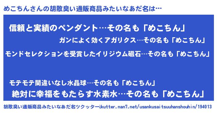 | 欧米人風あだ名 | 『ダニエルめこちん』『ウサインめこちん』 |