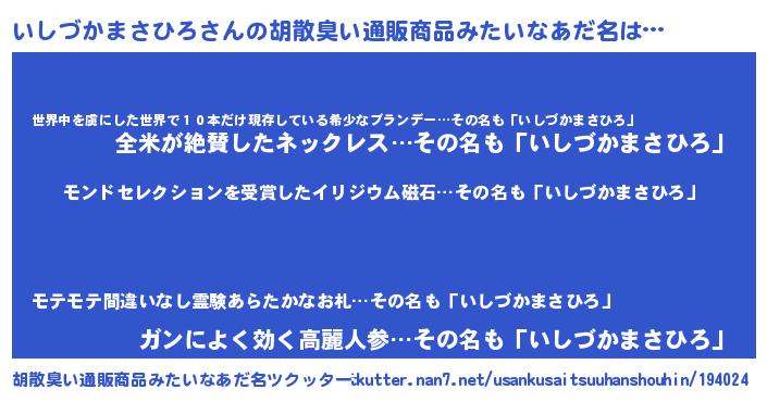 | 欧米人風あだ名 | 『アンジェラ・いしづかまさひろ』 |