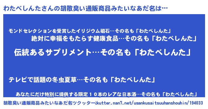 | 男性向けラノベタイトル風あだ名 | 『はたらくわたべしんたさま!』 |