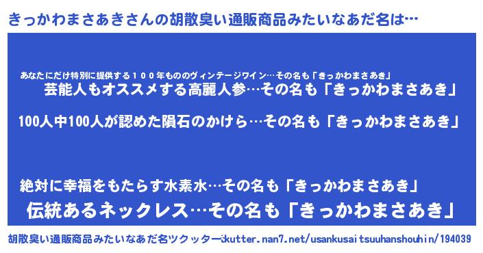 | 意味不明あだ名 | 『眠気覚ましガムきっかわまさあき味』 |