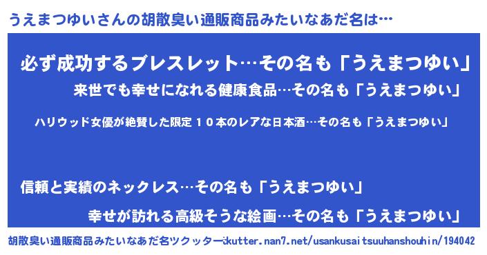 うえまつゆいさんの胡散臭い通販商品みたいなあだ名をツクッター!