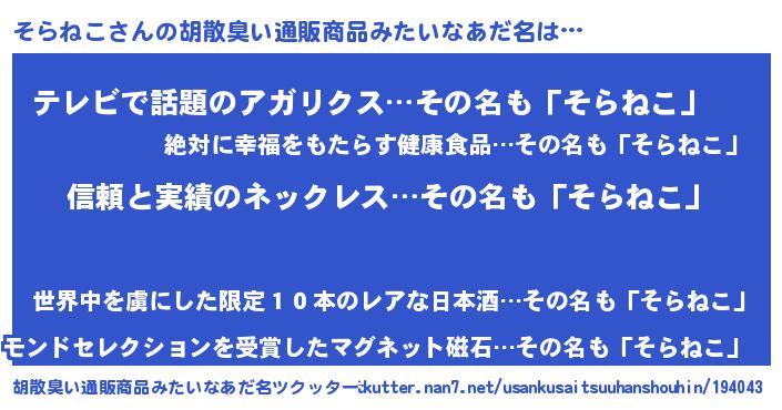 | 意味不明あだ名 | 『とにかく怪しいそらねこ』 |