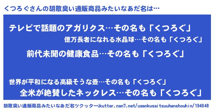 | 意味不明あだ名 | 『永久保存くつろぐ』『自称くつろぐ』 |
