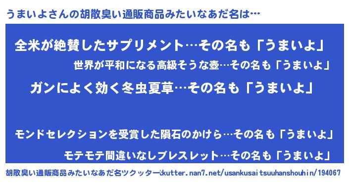 | ヘコむあだ名 | 『うまっちょ』『うまふぇ~』『豆乳』 |