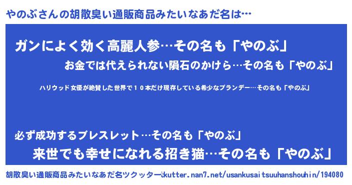 | ヘコむあだ名 | 『やのぶ(苦笑)』『やのふぇ~』 |