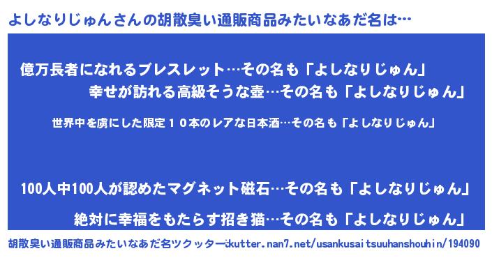| 意味不明あだ名 | 『住所不定無職よしなりじゅん(14歳)』 |