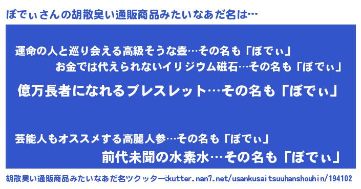 | ヘコむあだ名 | 『ぼでふぇ~』『酢こんぶ』 |