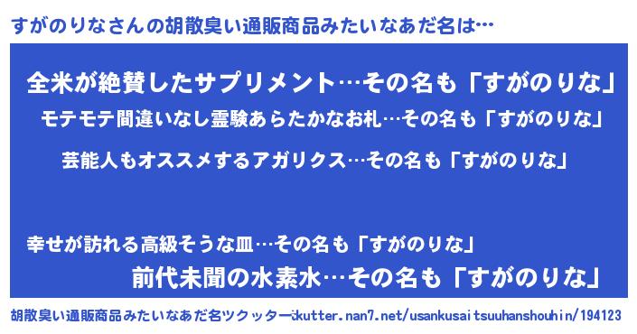 | 意味不明あだ名 | 『自称すがのりな』『永久保存すがのりな』 |
