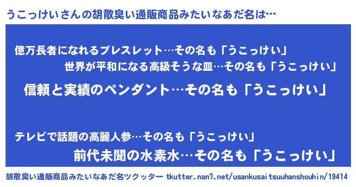 | ヘコむあだ名 | 『うこぷりん』『うこにー』 |