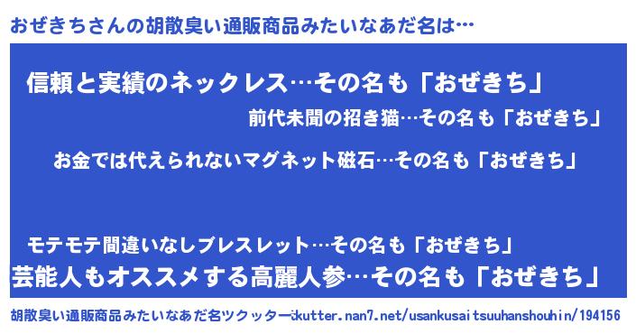 | 欧米人風あだ名 | 『ダニエルおぜきち』『ウサインおぜきち』 |
