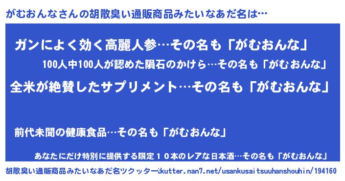 | 欧米人風あだ名 | 『アンジェラ・がむおんな』 |