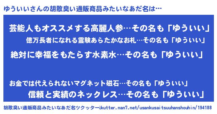 | 意味不明あだ名 | 『永久保存ゆういい』『自称ゆういい』 |