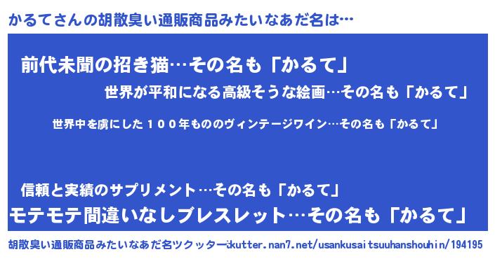 | 意味不明あだ名 | 『住所不定無職かるて(9歳)』 |