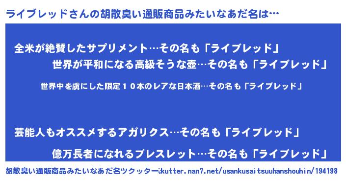 | 男性向けラノベタイトル風あだ名 | 『この素晴らしい世界にライブレッドを!』 |
