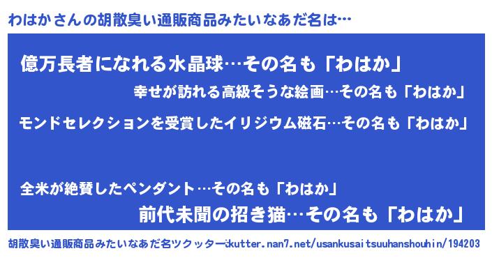 | ヒーロー風カッコイイあだ名 | 『天空の使者わはか』『スーパーワハカ』 |