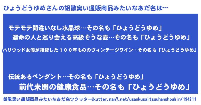 | ヘコむあだ名 | 『ひょふぇ~』『ひょうどうゆめ(苦笑)』 |