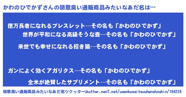 | 可愛いあだ名 | 『かわのひでかずママ』『かーみん』 |