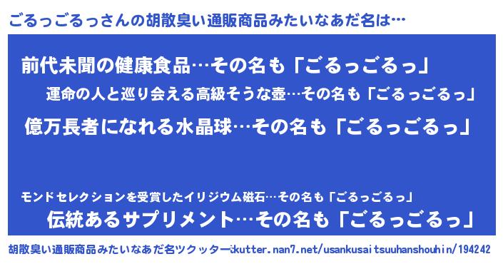 | 2回繰り返すあだ名 | 『ごるごる』『ことこと』『ぬめぬめ』 |