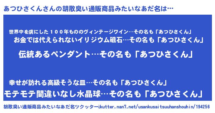 | 欧米人風あだ名 | 『アンジェラ・あつひさくん』 |
