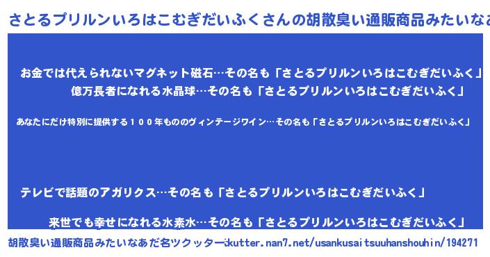 | 意味不明あだ名 | 『住所不定無職さとるプリルンいろはこむぎだいふく(5歳)』 |
