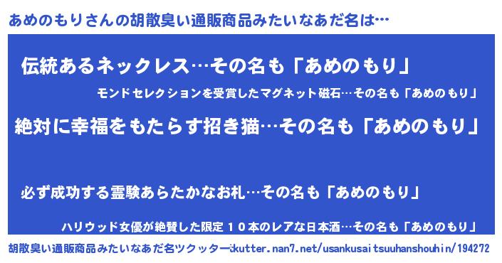 | 意味不明あだ名 | 『永久保存あめのもり』 |