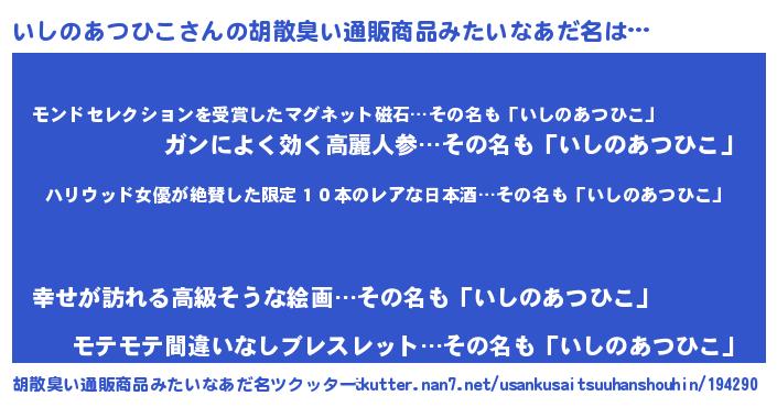 | 意味不明あだ名 | 『住所不定無職いしのあつひこ(47歳)』 |