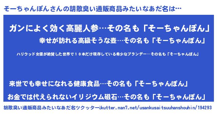 | 意味不明あだ名 | 『住所不定無職そーちゃんぽん(74歳)』 |
