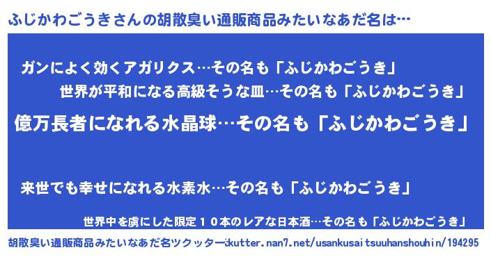 | 恥ずかしいあだ名 | 『プリティーふじかわごうき』『ふじちん』 |