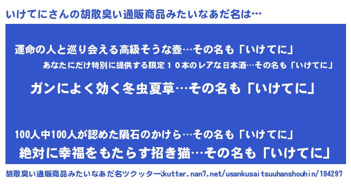 | 肩書あだ名 | 『いけてに総統』『いけてに上級大将』 |