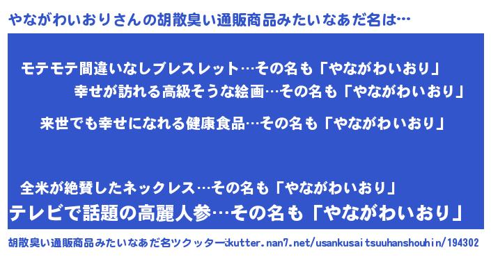 | 恥ずかしいあだ名 | 『やなちん』『プリティーやながわいおり』 |