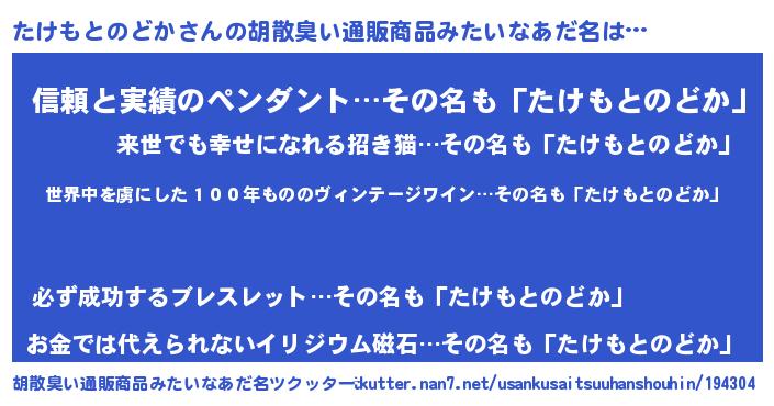 | 意味不明あだ名 | 『住所不定無職たけもとのどか(10歳)』 |