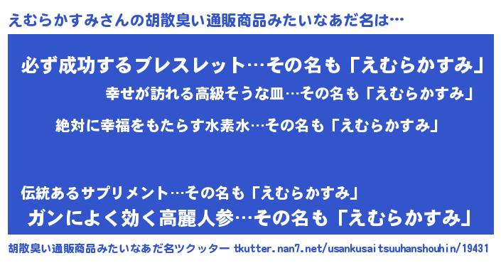 | ヘコむあだ名 | 『えむらかすみ(遠い目)』『えむふぇ~』 |