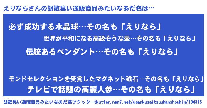 | 意味不明あだ名 | 『とにかく怪しいえりなら』 |