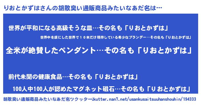 | 欧米人風あだ名 | 『ウサインりおとかずは』 |