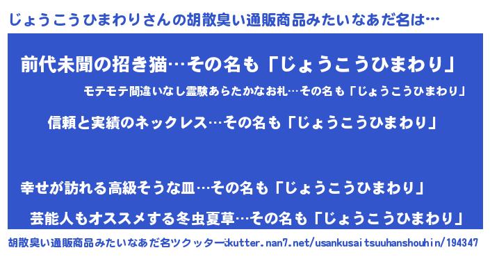 | 意味不明あだ名 | 『とにかく怪しいじょうこうひまわり』 |